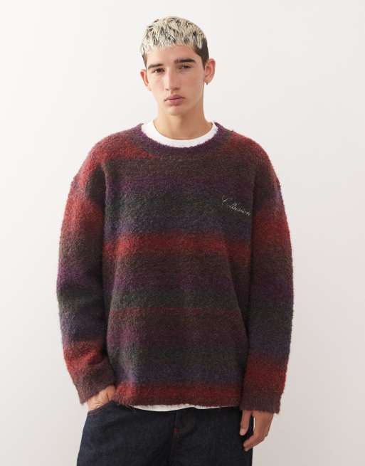 COLLUSION - Maglione girocollo bordeaux a righe