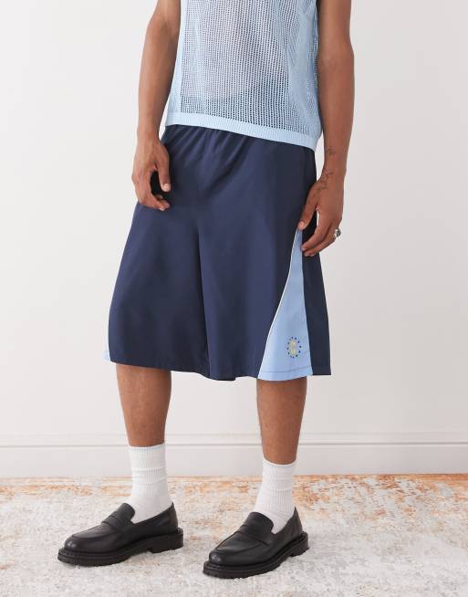 COLLUSION - Pantaloncini blu a pannelli stile football