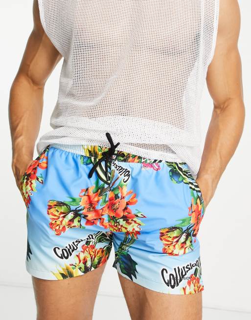 COLLUSION - Pantaloncini corti da bagno con stampa tropicale distorta