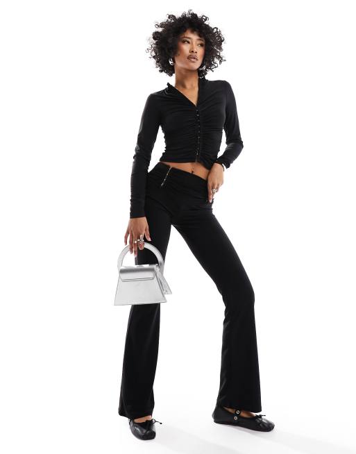COLLUSION - Pantaloni a zampa anni '00 neri con fascia in vita arricciata e gancetti