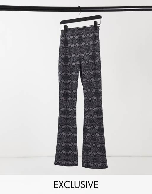 COLLUSION - Pantaloni a zampa e a vita alta grigio pitonato
