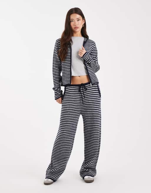 COLLUSION - Pantaloni dritti in maglia a righe blu e grigie