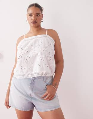 COLLUSION Plus - Canottiera bianca da spiaggia all'uncinetto con apertura sulla schiena