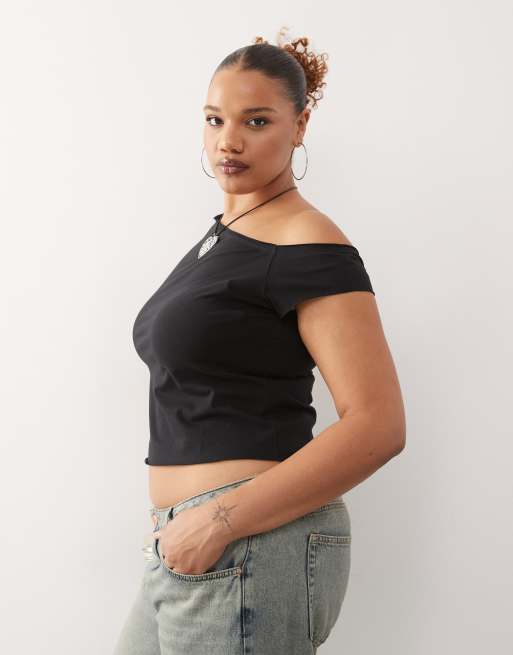 COLLUSION Plus - Top a maniche corte nero con spalle scoperte