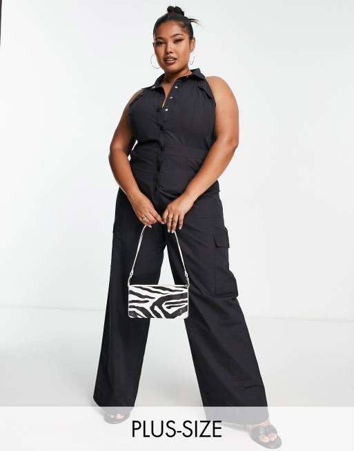 COLLUSION Plus - Tuta jumpsuit cargo multitasche nera