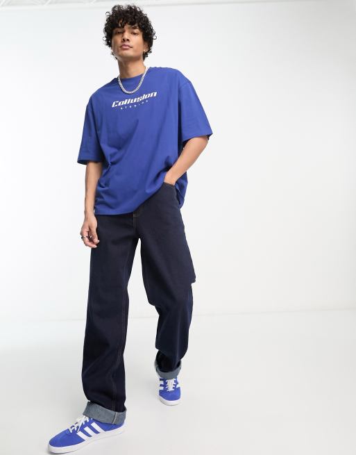 Collusion - Reserve - T-shirt blu cobalto con logo