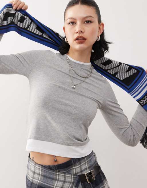 COLLUSION - T-shirt aderente a doppio strato color grigio mélange a coste