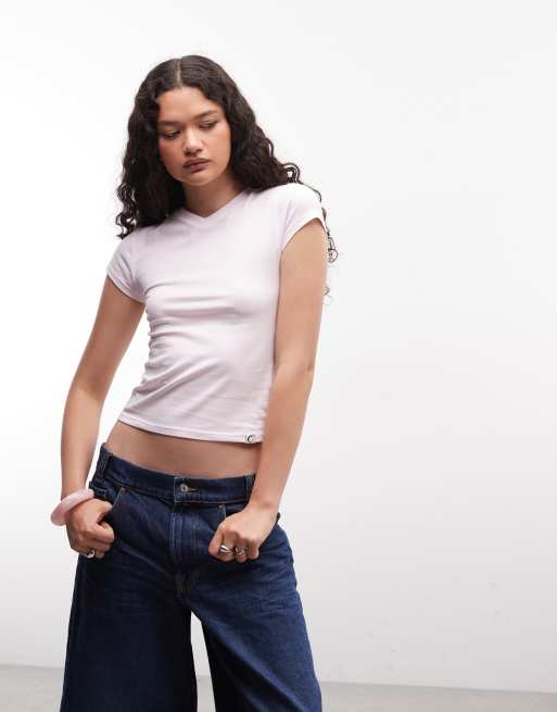 COLLUSION - T-shirt aderente anni '90 rosa con scollo a V alto