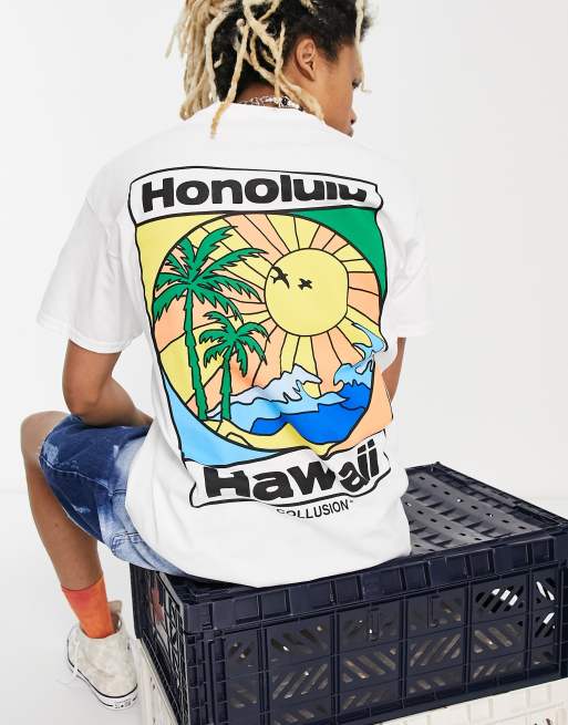 COLLUSION - T-shirt bianca con stampa delle Hawaii