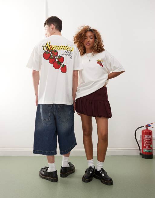 COLLUSION - T-shirt bianca con stampa grafica di pomodori