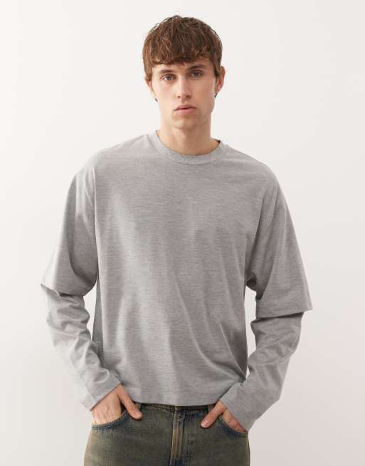 COLLUSION - T-shirt grigio mélange a doppio strato
