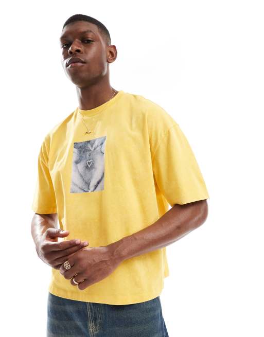 COLLUSION - T-shirt squadrata vestibilità skater gialla con stampa fotografica