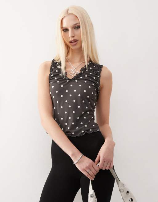 COLLUSION - Top arricciato con scollo a V a pois monocromatici