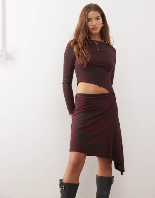 COLLUSION - Top bordeaux asimmetrico a righe con design spezzato