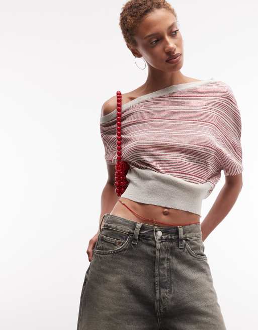COLLUSION - Top rosso e crema a righe luccicanti con spalle scoperte