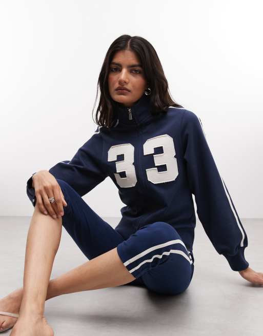 COLLUSION - Top sportivo blu navy con collo a imbuto e zip in coordinato