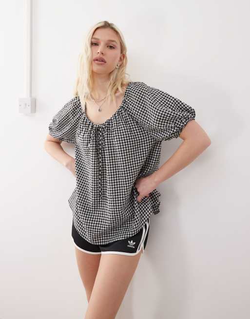 COLLUSION - Top stile grembiule a quadretti monocromatici