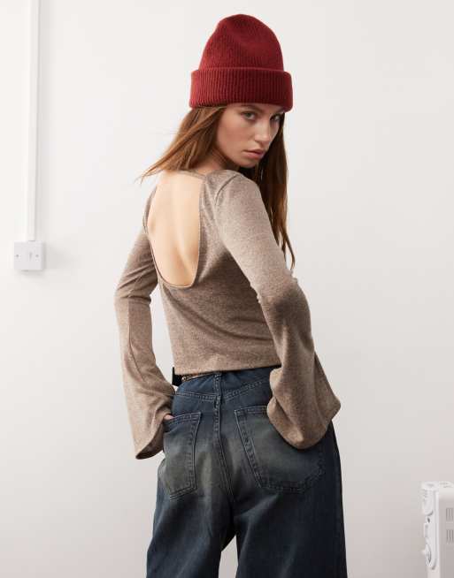 COLLUSION - Top testurizzato con scollo sulla schiena e maniche scampanate