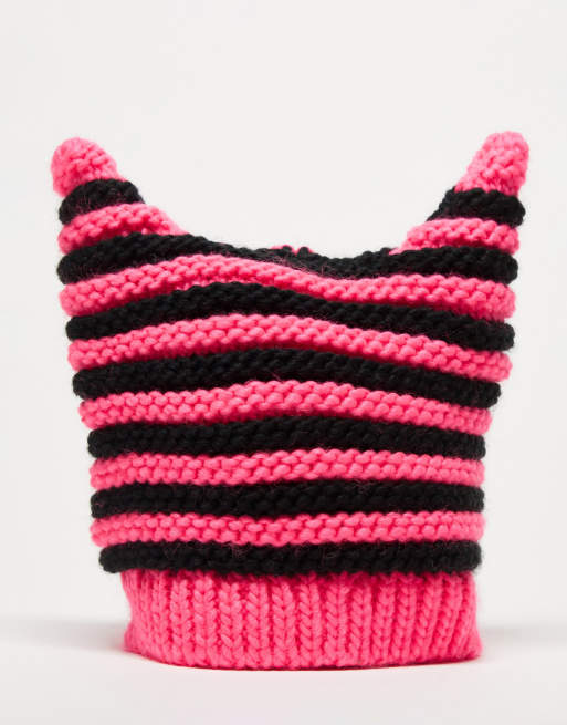 Collusion Unisex - Berretto all'uncinetto rosa e nero a righe