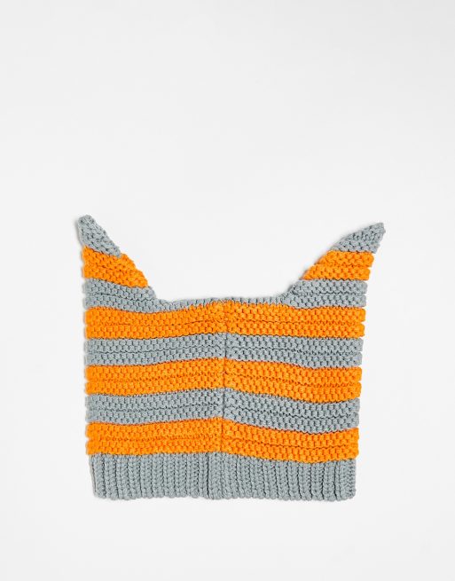 Collusion Unisex - Berretto con orecchie a righe arancione e grigio
