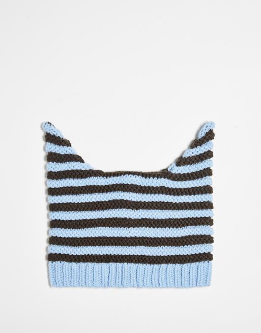 Collusion Unisex - Berretto con orecchie a righe blu e marrone