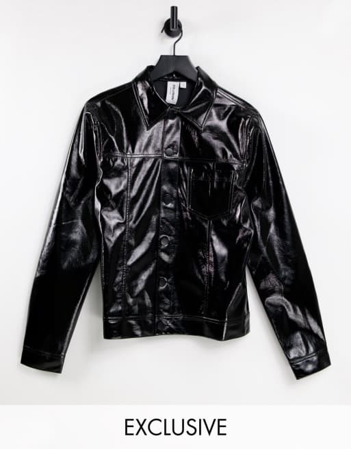 COLLUSION Unisex - Camicia giacca unisex in vinile nero lucido