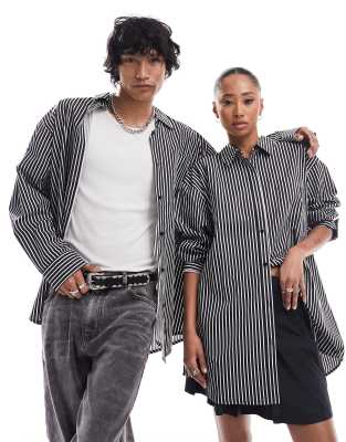COLLUSION Unisex - Camicia oversize in cotone a righe bianche e nere