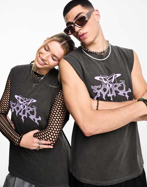 COLLUSION Unisex - Canotta oversize antracite con stampa tattoo sul davanti