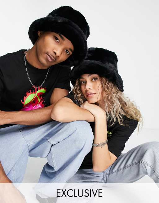 COLLUSION Unisex - Cappello da pescatore soffice nero