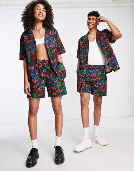 COLLUSION Unisex - Coordinato con pantaloncini e camicia nero con logo