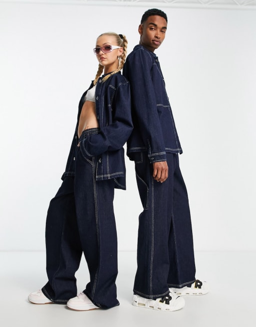 Collusion Unisex - Coordinato in denim blu con camicia multitasche e pantaloni