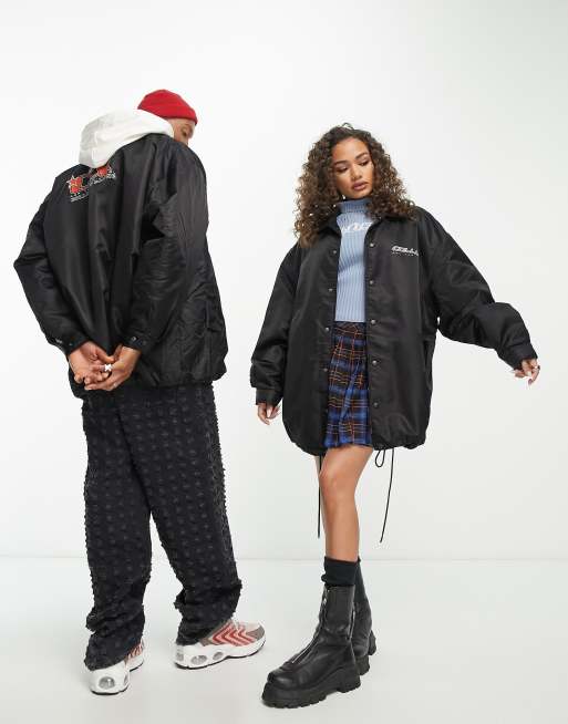 COLLUSION Unisex - Giacca oversize in poliestere nera con stampa motocross