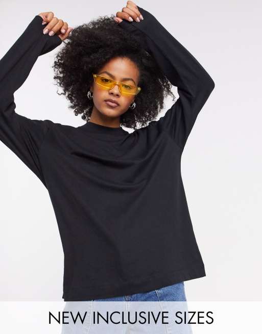 COLLUSION Unisex - Maglietta a maniche lunghe in cotone nera - BLACK