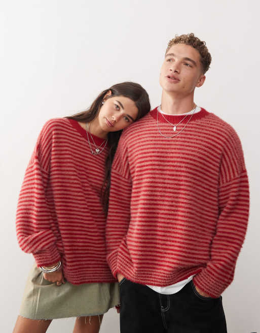 COLLUSION Unisex - Maglione girocollo soffice beige a righe