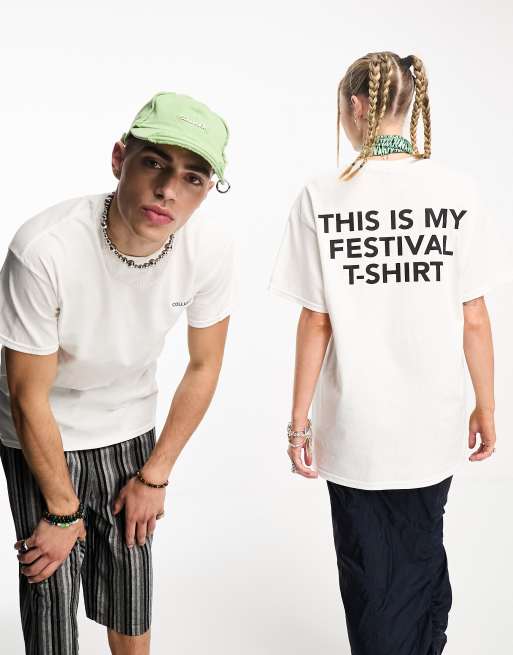 COLLUSION Unisex - T-shirt bianca con scritta Festival