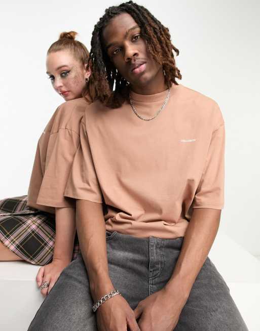 COLLUSION Unisex - T-shirt marrone con logo