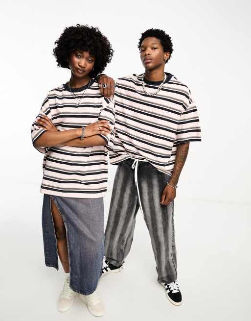 COLLUSION Unisex - T-shirt oversize in piqué rosa a righe