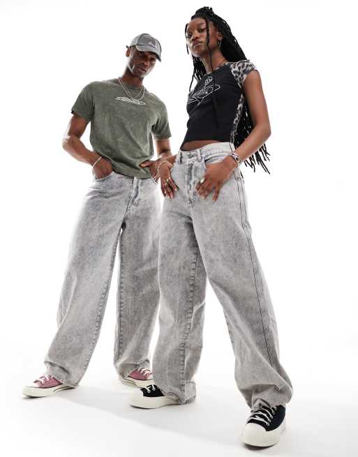 COLLUSION Unisex - X002 - Jeans larghi lavaggio grigio