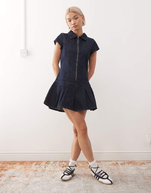 COLLUSION - Vestito aderente con vita scesa in denim blu a righe anni '90