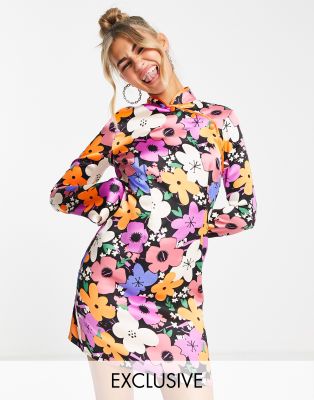 COLLUSION - Vestito corto con stampa a fiori e maniche svasate
