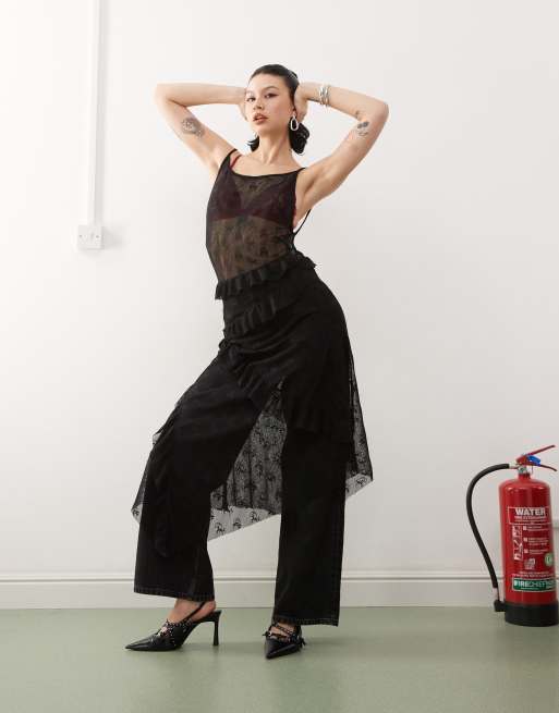 COLLUSION - Vestito in pizzo con gonna al polpaccio con orlo svasato e logo