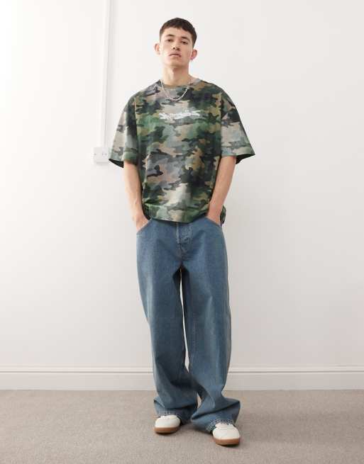 COLLUSION - X002 - Jeans ampi lavaggio medio con tasche skate