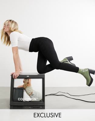 COLLUSION x002 - Jeans super skinny a vita alta nero pulito