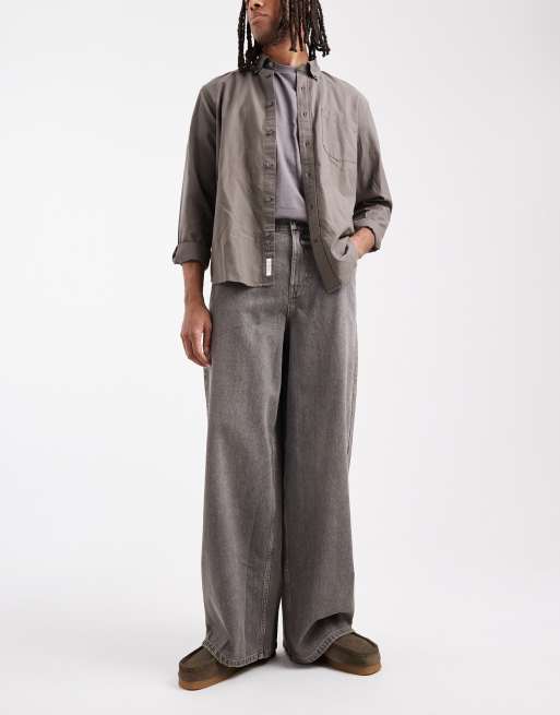 COLLUSION - X003 - Jeans a fondo ampio e vita medio alta grigio slavato