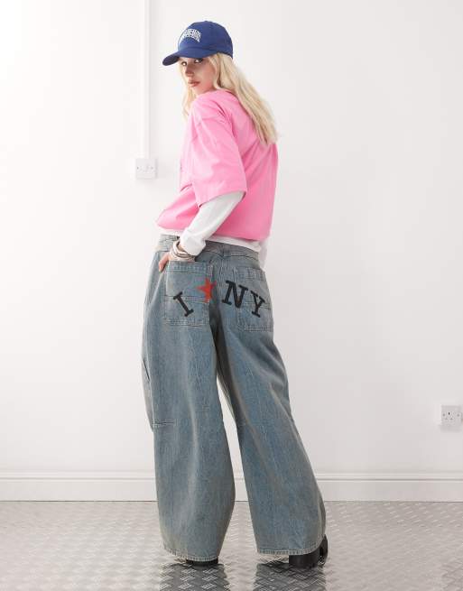 COLLUSION - X007 XL - Jeans ampi lavaggio chiaro con stampa sul retro