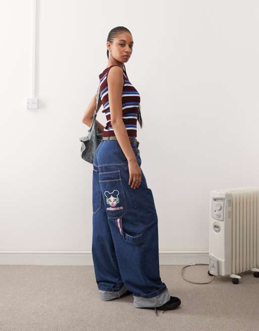 COLLUSION - X008 - Jeans skater lavaggio medio con ricamo