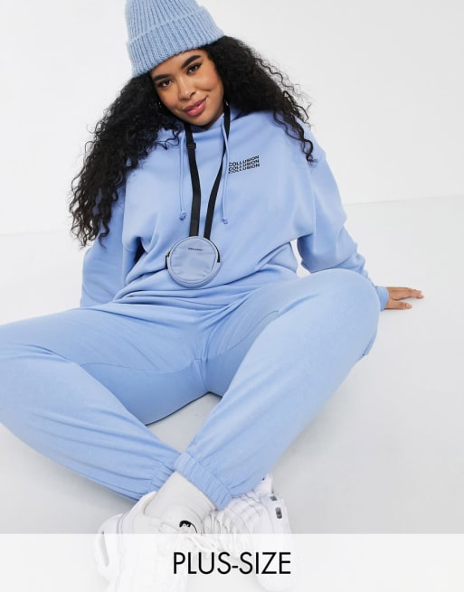 Esclusiva COLLUSION Plus - Coordinato con felpa con cappuccio oversize e joggers skinny azzurro