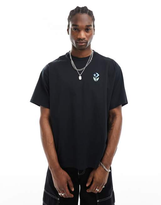 Converse - T-shirt oversize nera con fiore e logo Star Chevron