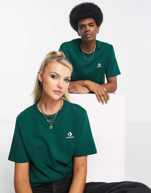 Converse - T-shirt unisex verde scuro con logo Star Chevron