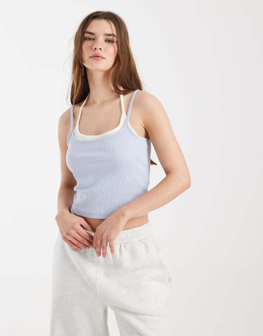 Cotton On - Canottiera a doppio strato lavaggio blu acciaio